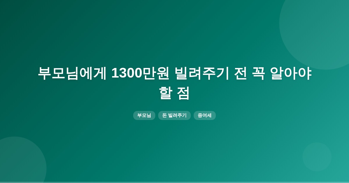 부모님에게 1300만원을 무이자로 빌려줄 경우, 국세청에서 증여로 간주될 수 있으며, 이자 상당액이 연간 1천만 원을 초과하면 증여세 신고를 고려해야 합니다. 또한, 상환을 받지 못할 경우 법적 절차를 통해 반환을 요구할 수 있습니다.