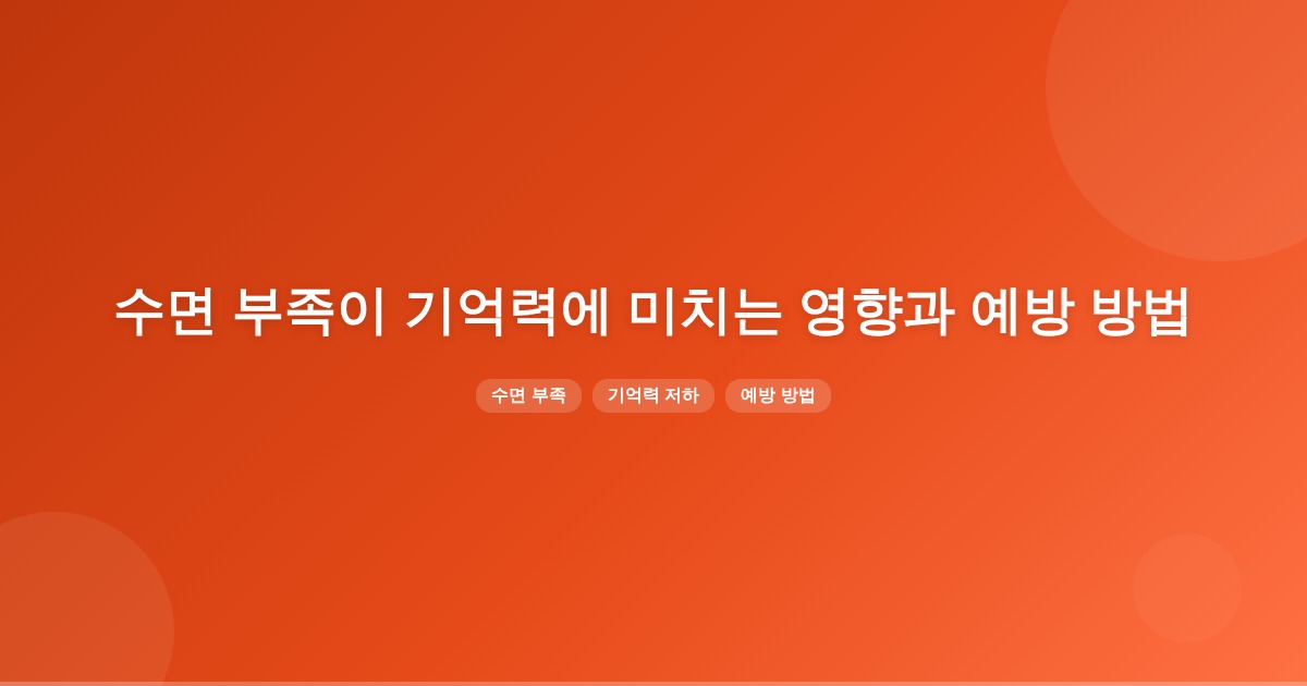 수면 부족은 뇌의 기능을 저하시키고 기억력을 약화시킵니다. 규칙적인 수면 습관과 스트레스 관리는 기억력 회복에 도움을 줄 수 있습니다.