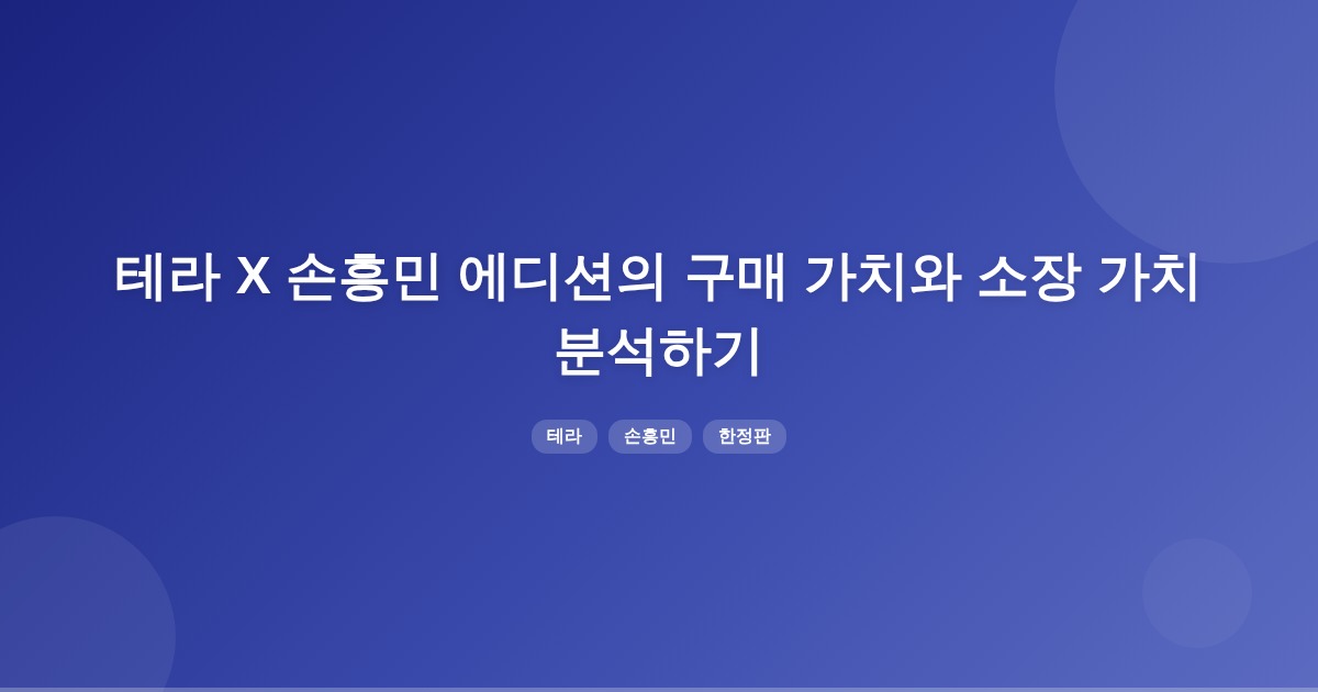 테라 X 손흥민 에디션은 한정판으로 출시되어 소장 가치가 있을 수 있으나, 구매 가치는 해당 제품의 성능, 디자인, 한정 수량, 시장 인기 등에 따라 달라질 수 있습니다. 따라서 신중한 판단이 필요합니다.