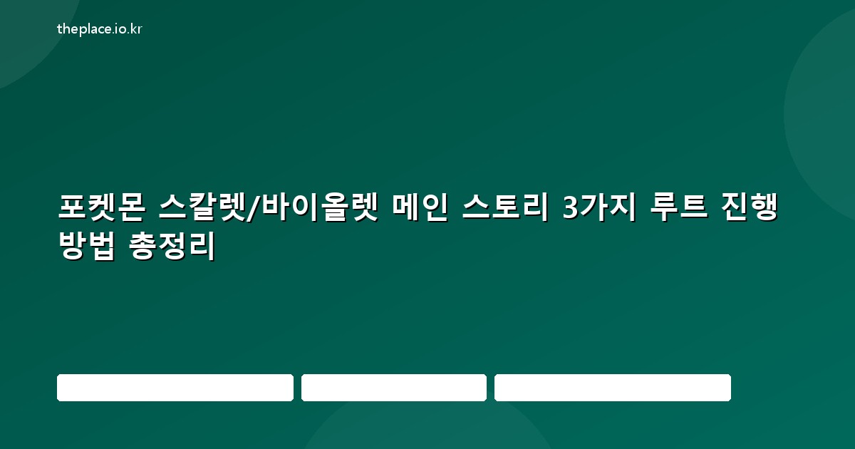 포켓몬 스칼렛/바이올렛의 메인 스토리는 승리의 도로(체육관 배지), 전설의 길(거대 포켓몬), 별들의 길(팀스타 기지) 세 가지 루트로 구성돼요. 어느 루트를 먼저 해도 되지만 세 루트를 전부 완료해야 최종 스토리가 열려요. 중간에 다른 루트로 이탈했다면 지도에서 목표 표시를 확인하고