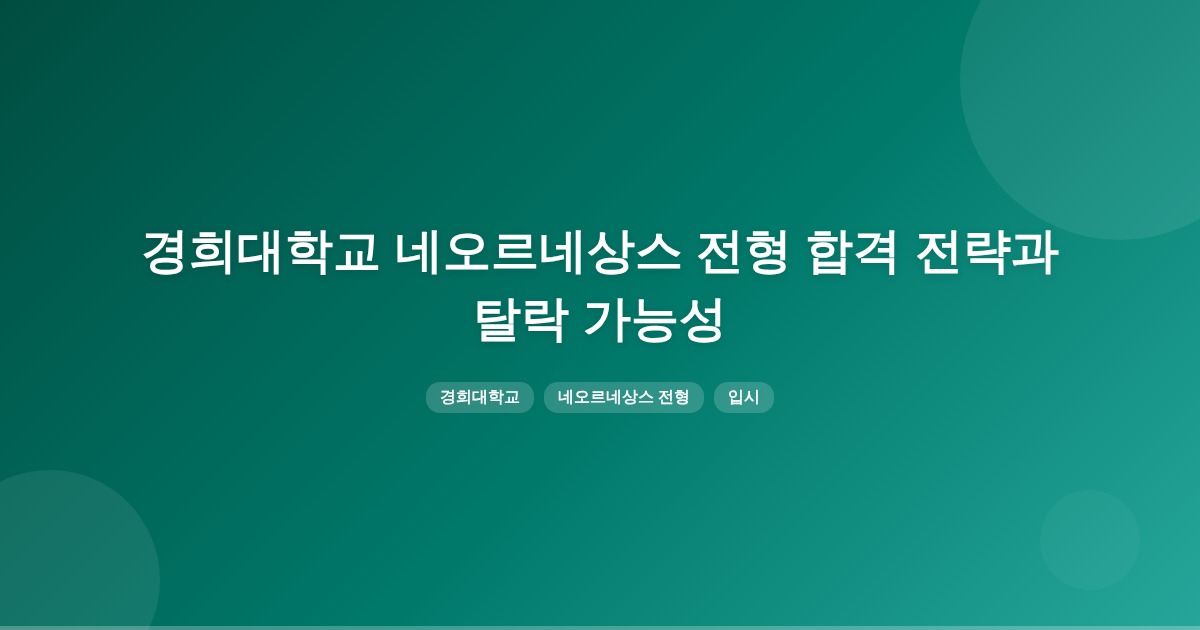 경희대학교 네오르네상스 전형에서 1차 탈락 가능성은 서류 평가 성적, 생활기록부의 완성도, 자기소개서의 질, 면접 준비 상태에 따라 달라집니다. 높은 경쟁률 또한 중요한 요소로 작용하므로, 철저한 준비가 필요합니다.