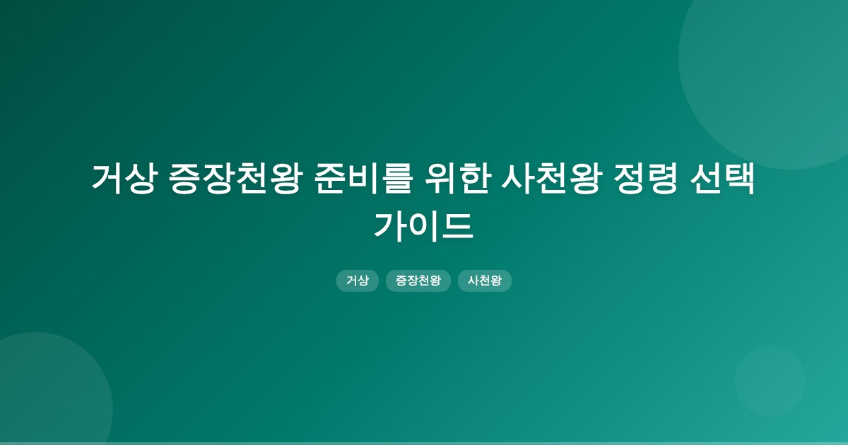 증장천왕을 준비할 때 사천왕 정령 선택은 사냥 효율과 재화 수급이 중요합니다. 신규 유저는 각성까지의 경험치와 비용을 고려해 사냥 효율이 높은 사천왕부터 우선적으로 선택하는 것이 권장됩니다.