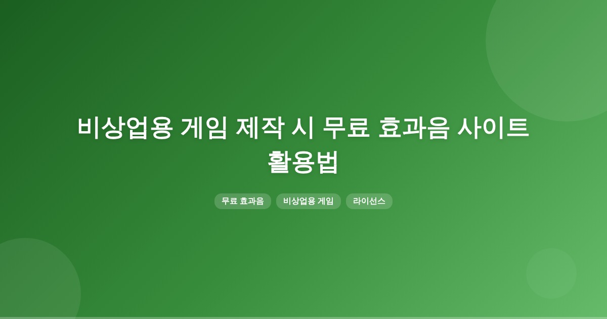 비상업용 게임 제작 시 무료 효과음 사이트의 음원은 파일 단위로 라이선스가 다르므로, 각 음원의 라이선스 조건을 반드시 확인해야 합니다. CC0 음원은 출처 표기 없이 사용 가능하지만, CC BY·CC BY-NC 음원은 조건을 지켜야 합니다.