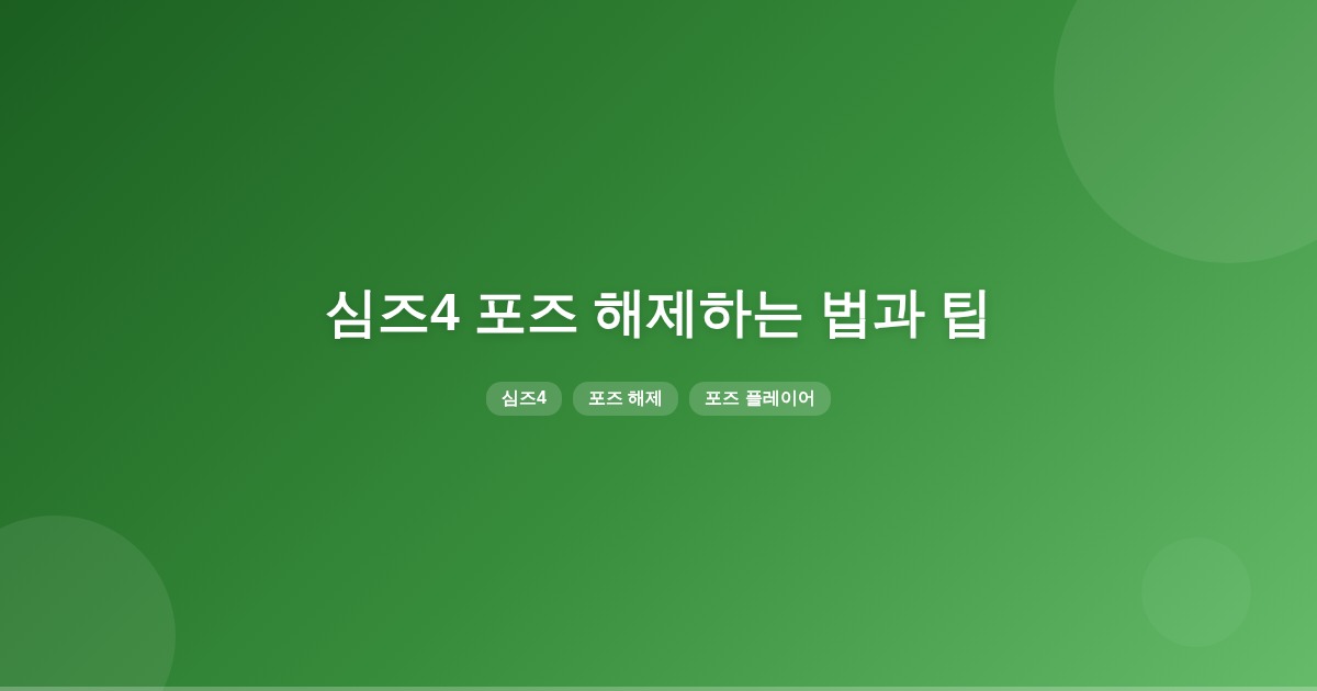심즈4에서 포즈를 해제하려면 포즈 플레이어와 포즈팩을 설치하고, 포즈가 풀리는 상황을 피해야 합니다. 포즈가 풀리는 조건을 이해하고 적절한 방법으로 포즈를 적용하면 문제를 해결할 수 있습니다.