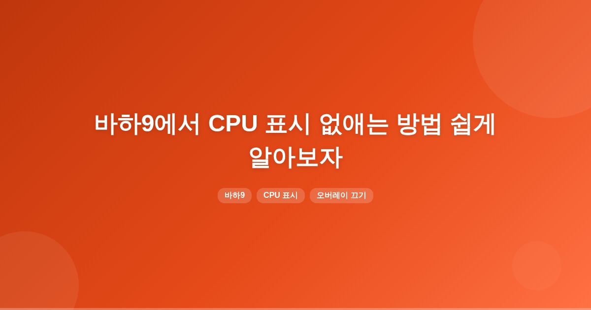 바하9에서 화면에 나타나는 CPU 표시를 없애려면, Alt + R(또는 Alt + Z) 단축키로 HUD를 일시 숨기거나, GeForce Experience, AMD Radeon, MSI Afterburner 등의 오버레이 설정에서 해당 기능을 끄면 됩니다.