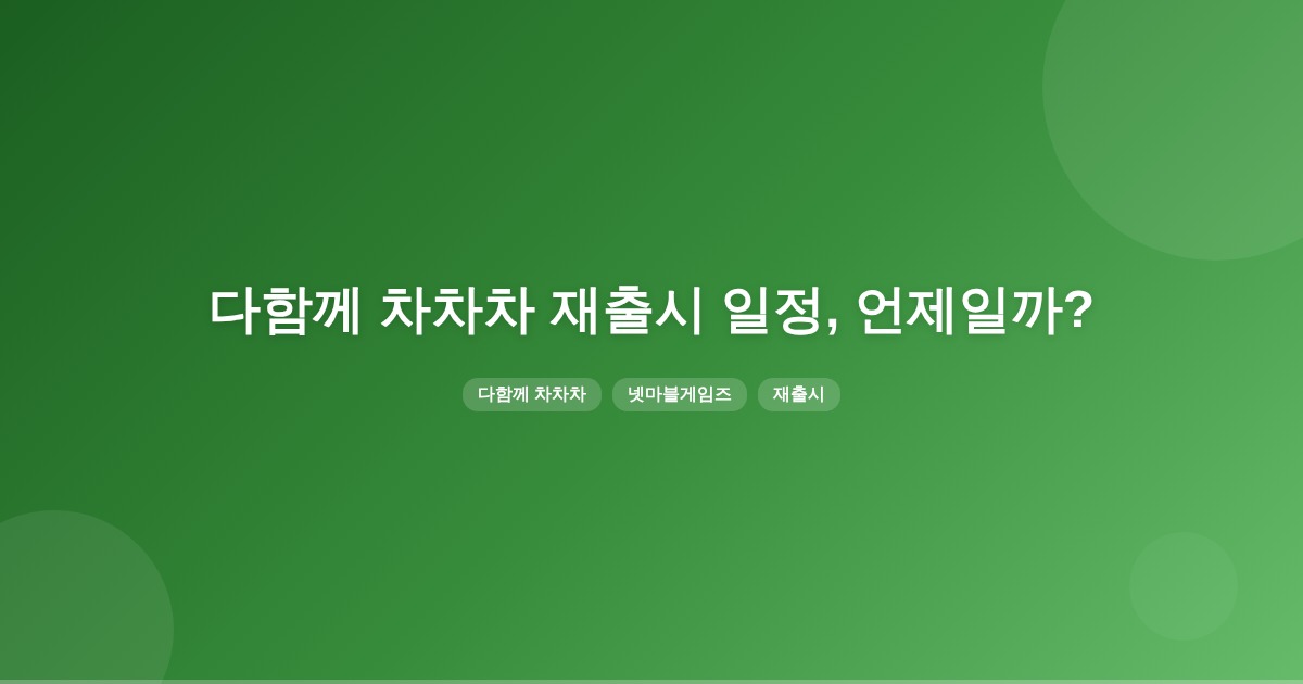 다함께 차차차 for Kakao와 다함께 차차차2의 재출시 작업 완료 날짜는 명확히 확인되지 않았습니다. 그러나 올해 하반기 또는 내년 초 재출시 가능성이 높다고 합니다.