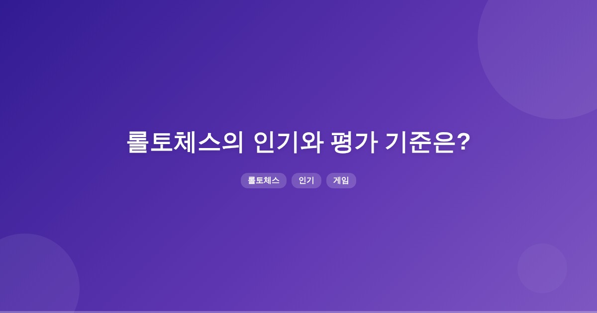 현재 롤토체스의 인기 지표에 대한 구체적인 정보는 부족합니다. 사용자 수, 시청률, 매출 등 다양한 기준을 통해 인기도를 평가할 수 있으나, 명확한 통계는 확인되지 않았습니다.