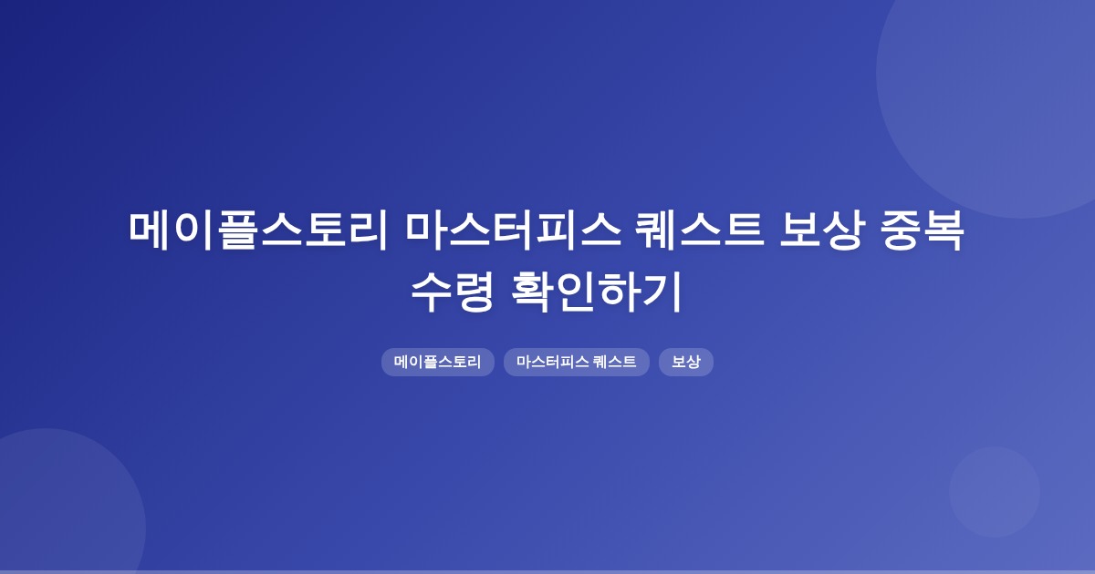 메이플스토리에서 마스터피스 퀘스트 보상을 두 번 받을 수 있는 구체적인 조건은 명확하지 않습니다. 계정 단위로 적용되는 업적과 스페셜 미션의 동기화가 완벽하지 않을 수 있으니 확인이 필요합니다.
