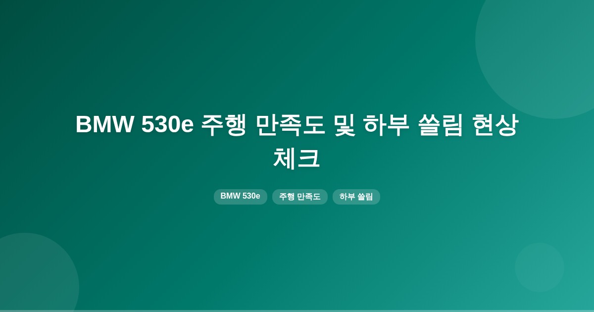 BMW 530e의 주행 만족도와 하부 쓸림 현상에 대한 정보는 명확히 확인하기 어렵습니다. 하지만 주행 감각과 하부 쓸림에 대한 사용자 경험을 체크하는 것이 중요합니다.