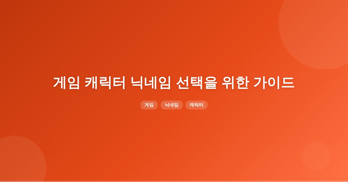 게임 캐릭터 닉네임은 발음이 쉽고 길이가 짧으며, 의미와 개성을 고려해 정하는 것이 중요합니다. 또한, 각 게임마다 닉네임 규칙이 다르므로 사전에 확인하는 것이 필요합니다.