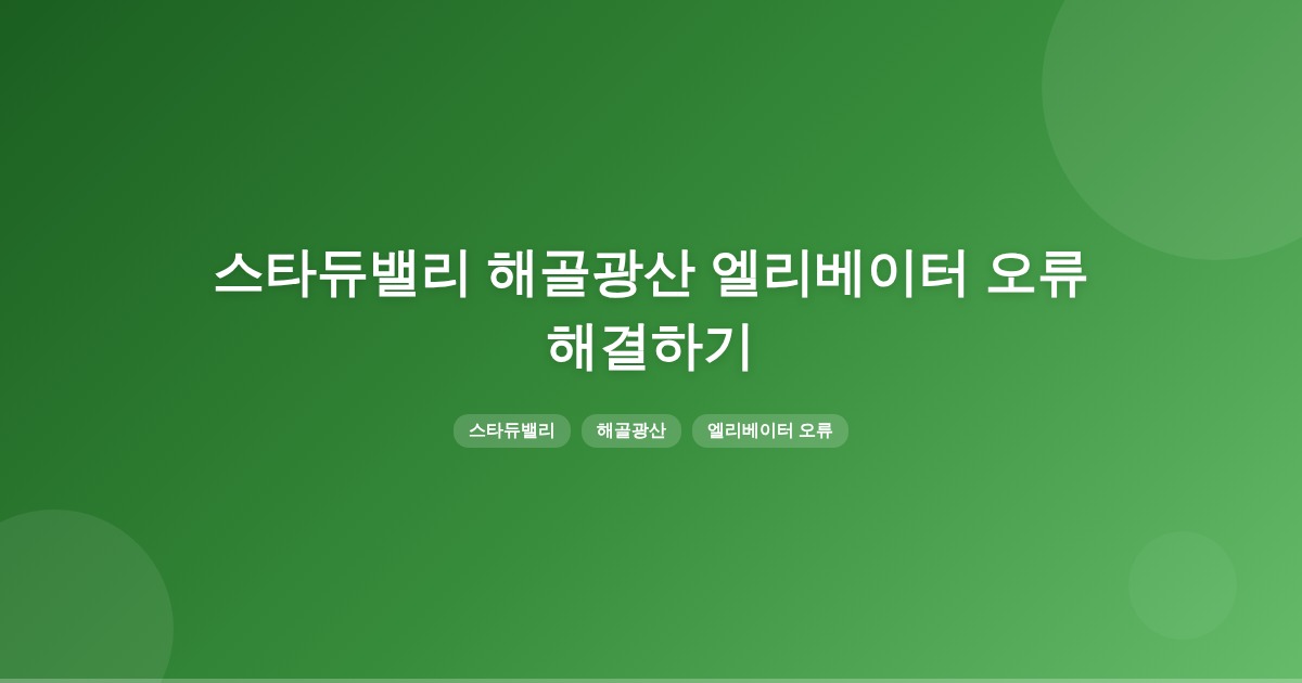 스타듀밸리의 해골광산 엘리베이터가 작동하지 않는 문제는 모드의 적용 여부와 게임 버전 호환성에 관련이 있습니다. 엘리베이터가 보이지 않으면 모드가 제대로 설치되지 않았을 가능성이 높습니다.