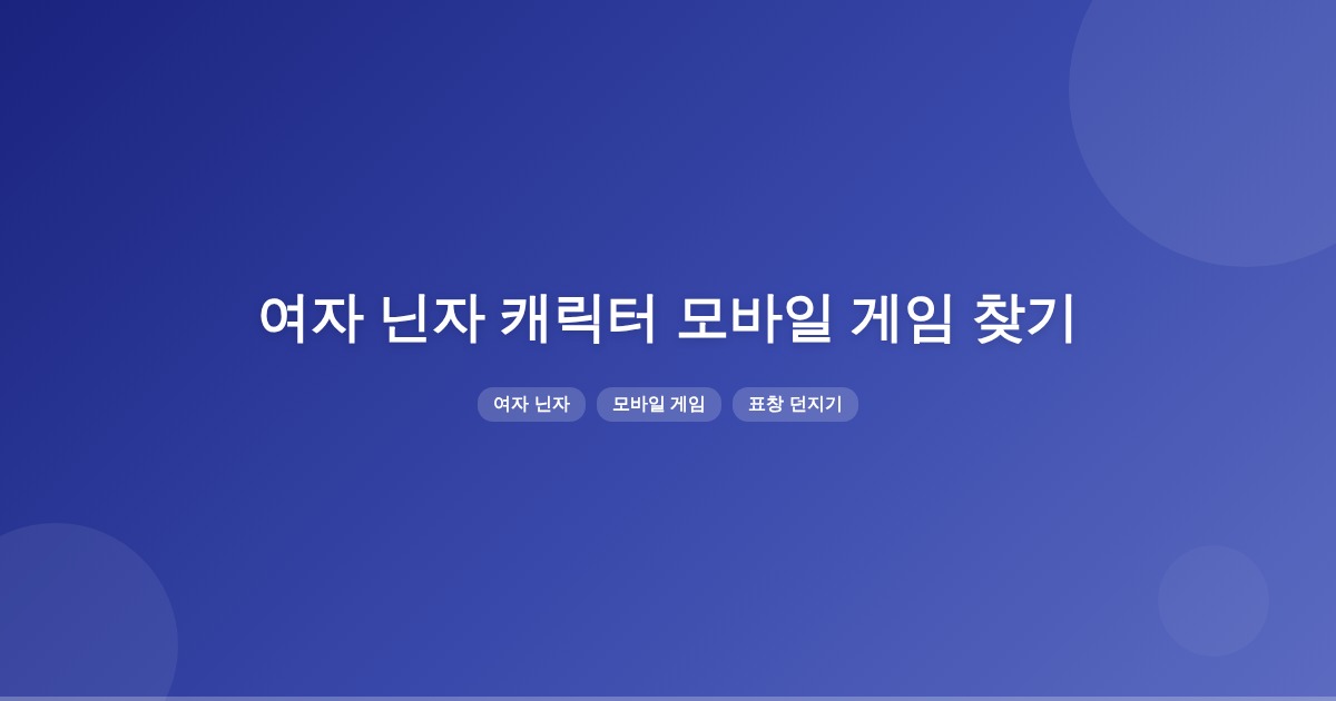 현재로서는 여자 닌자 캐릭터가 등장하고 표창을 던지는 모바일 게임의 제목을 특정하기 어렵습니다. 추가적인 정보가 필요하며, 게임의 장르나 플랫폼에 대한 세부 사항이 도움이 될 수 있습니다.
