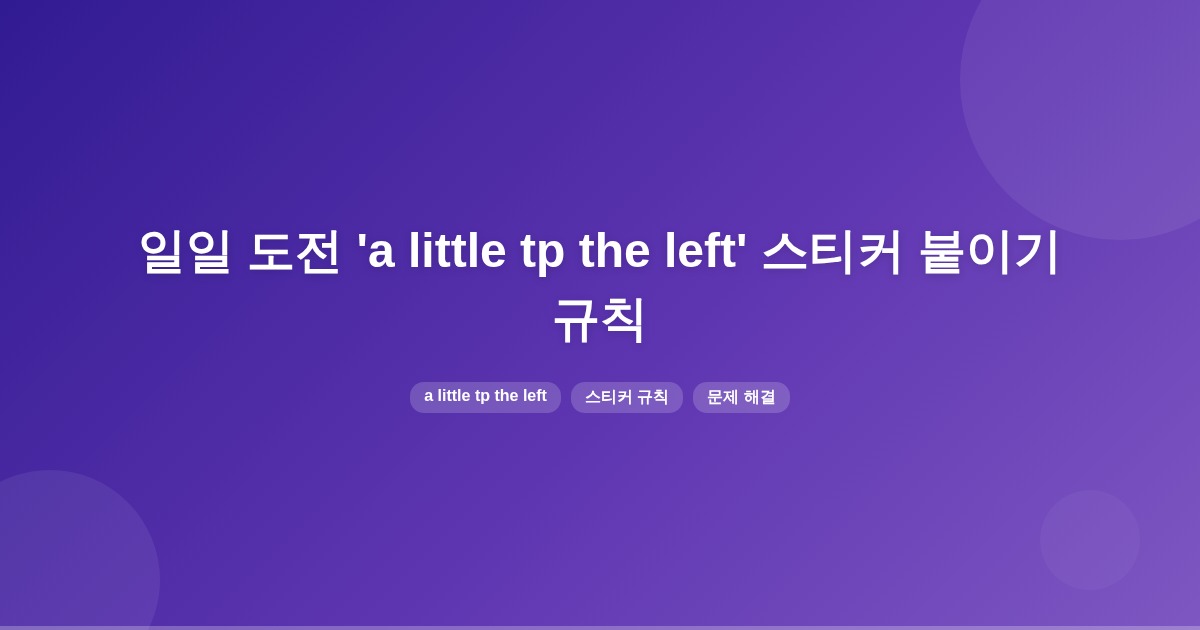 일일 도전 ‘a little tp the left’의 스티커 붙이기 규칙은 공식 문서나 커뮤니티 게시글을 통해 확인할 수 있습니다. 스티커의 의미를 파악한 후 규칙을 추론하는 것이 중요합니다.