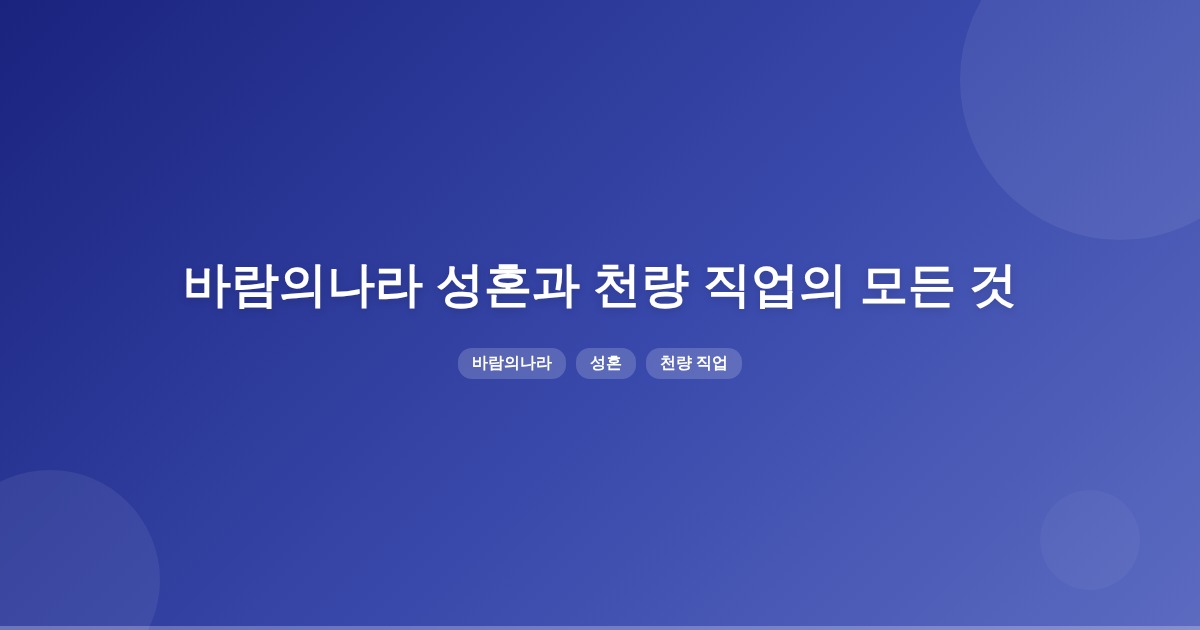 바람의나라에서 성혼과 천량 직업의 구체적인 조건과 기준은 명확히 확인할 수 없습니다. 다만, 직업별 필요 경험치 및 승급 조건은 전사 중심으로 정리된 자료가 있습니다.