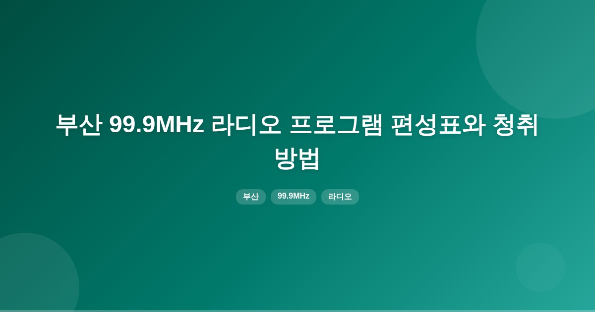 부산 99.9MHz 라디오 프로그램 편성표와 청취 방법