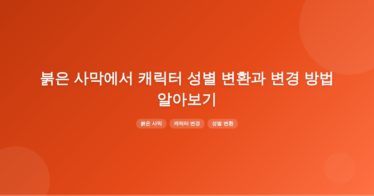 붉은 사막에서 여캐로 성별 변환이나 다른 캐릭터 변경 방법은 공식적으로 확인되지 않았습니다. 게임 내 설정 메뉴에서 성별 변경 옵션을 확인하거나, 비공식적인 방법으로 캐릭터를 재생성하여 변경할 수 있습니다.