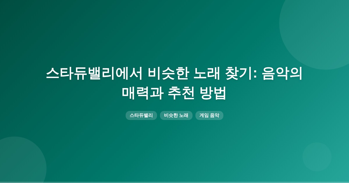 스타듀밸리와 비슷한 노래를 찾으려면 장르, 분위기, 멜로디, 사용 맥락 등의 기준을 설정하는 것이 중요합니다. Spotify, Apple Music 등의 플랫폼을 활용해 추천을 받는 방법도 효과적입니다.