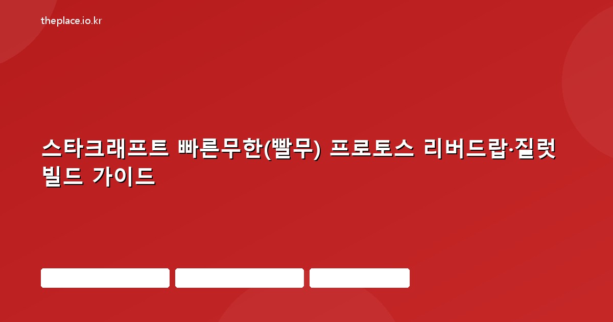 스타크래프트 빠른무한(빨무) 프로토스 빌드는 초반 질럿 압박부터 셔틀+리버 견제(리버드랍), 하이템플러 스톰 조합까지 단계별로 전환하는 것이 핵심이며, 빌드 순서를 외워두면 자원 낭비 없이 빠른 견제가 가능합니다.