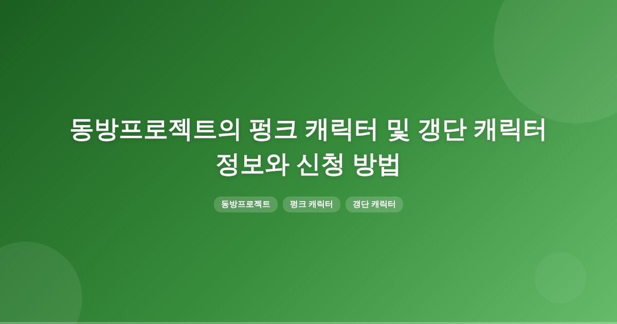 현재 동방프로젝트에서 펑크 캐릭터와 갱단 캐릭터의 종류 및 신청 방법에 대한 명확한 정보는 확인할 수 없습니다. 가장 정확한 정보는 동방프로젝트 공식 홈페이지의 캐릭터 신청 안내 페이지를 참고하는 것이 좋습니다.