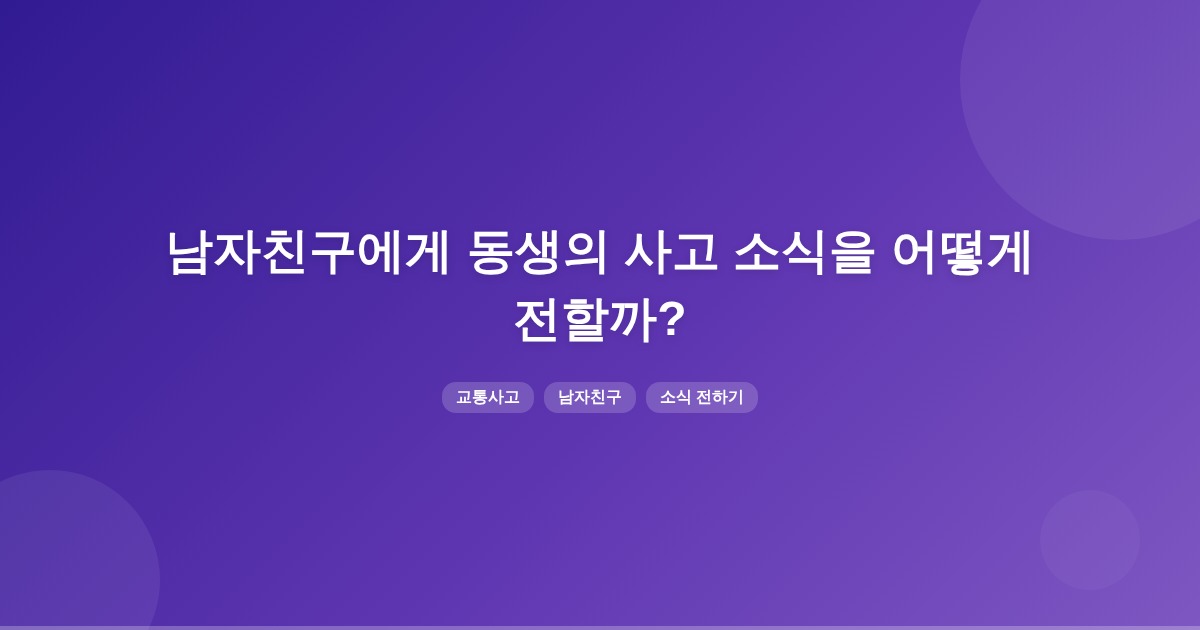 남자친구에게 동생의 교통사고 소식을 전하는 것은 관계의 신뢰를 높이고 오해를 줄이는 데 도움이 될 수 있습니다. 하지만 전달 방식과 내용에 주의하여 감정적 추측을 피하고 사실만 전달하는 것이 중요합니다.