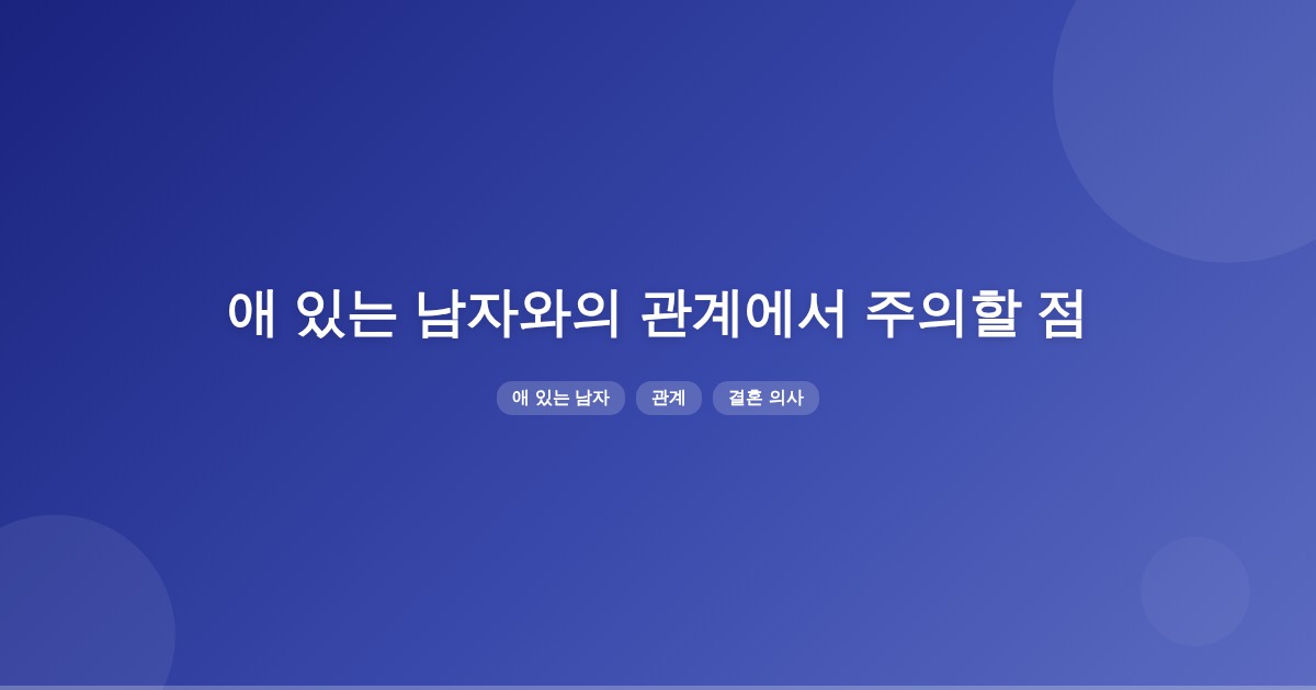 애 있는 남자와의 관계에서는 결혼 의사와 시급성, 의사소통의 중요성이 핵심입니다. 초반에 상대의 결혼 의사를 명확히 확인하고, 신뢰를 쌓는 것이 갈등을 줄이는 열쇠입니다.