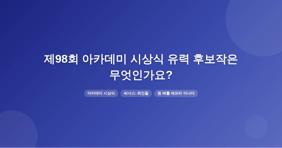제98회 아카데미 시상식에서는 ‘씨너스: 죄인들’과 ‘원 배틀 애프터 어나더’가 양강 구도를 이루고 있습니다. 또한 ‘케이팝 데몬 헌터스’가 장편 애니메이션상에서 수상하였고, ‘푸틴에 반대하는 모든 사람’이 장편 다큐멘터리상에서 수상하였습니다.