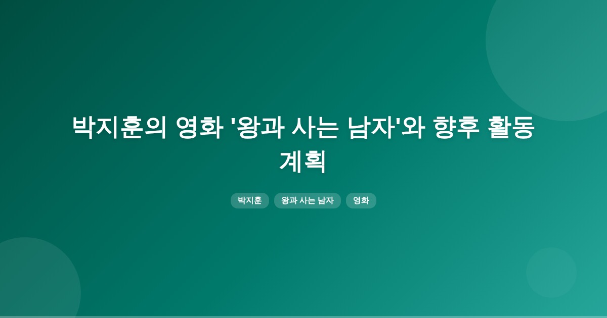 박지훈의 영화 왕과 사는 남자와 향후 활동 계획