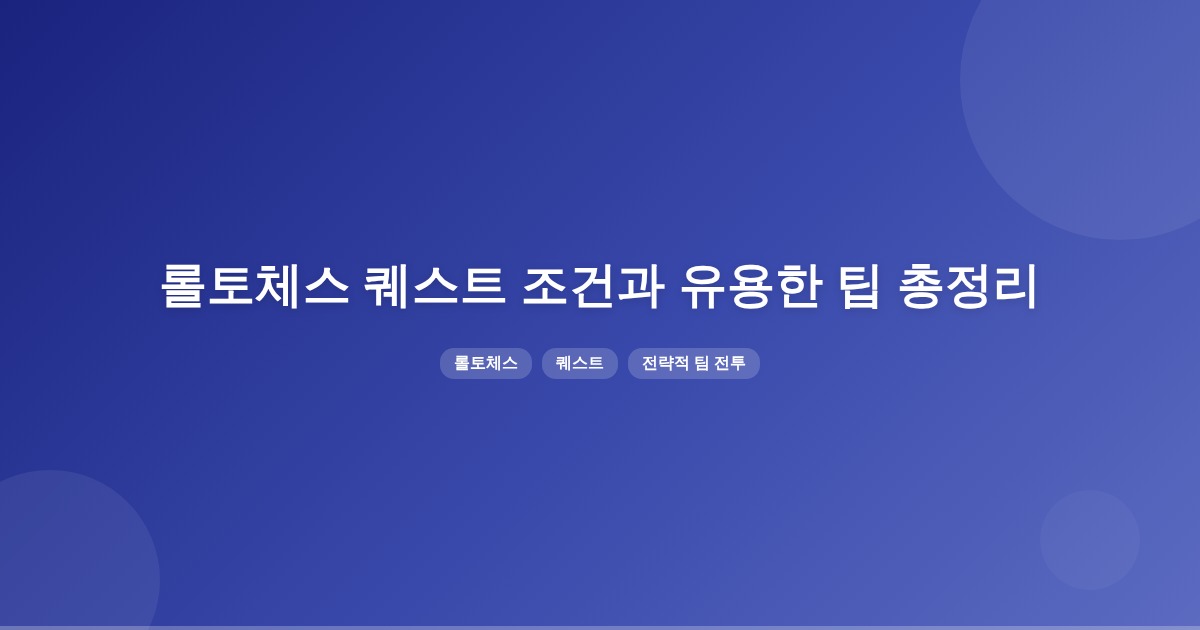 롤토체스 퀘스트의 구체적인 조건은 게임 내 퀘스트 UI에서 확인할 수 있으며, 특정 챔피언 수집, 전투 패턴, 아이템 획득 등이 포함될 수 있습니다. 또한, 무기고 팝업의 제한 타이머를 활용하고 패치 노트를 참고하는 것이 중요합니다.