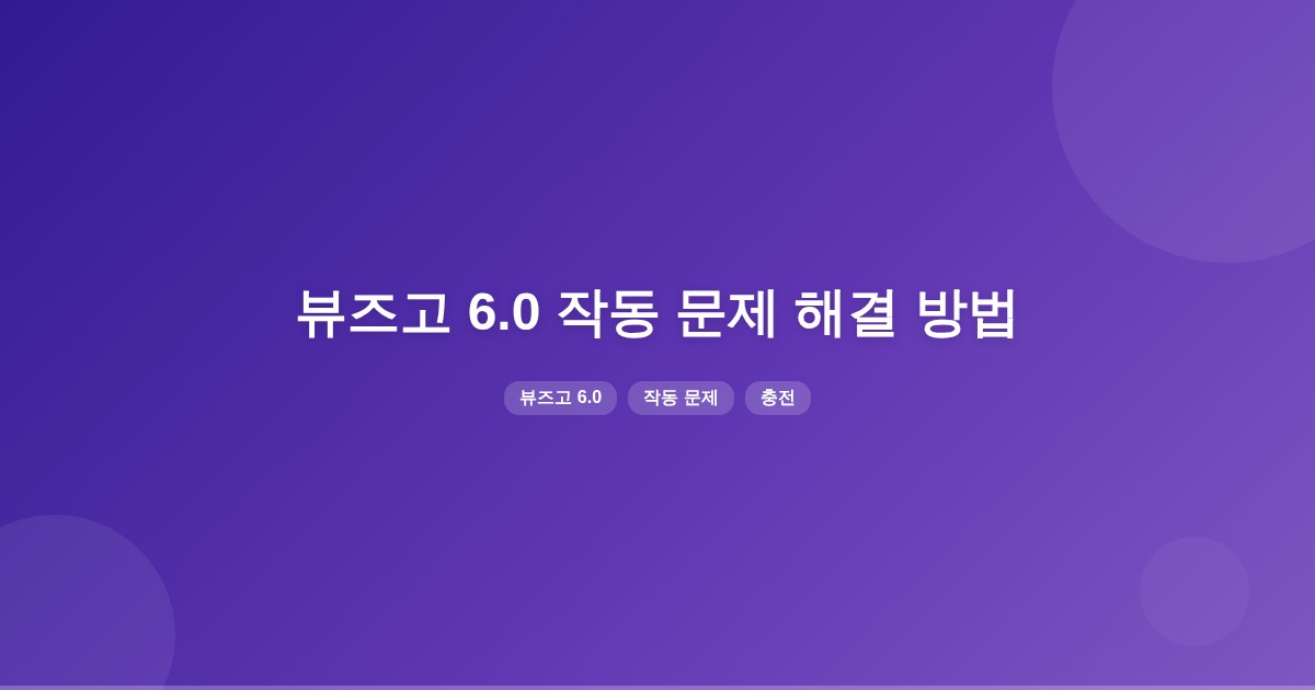뷰즈고 6.0이 충전 후에도 작동하지 않는 경우, 전원/충전 상태 확인, 버튼 점검, 강제 재부팅 등의 점검이 필요합니다. 문제가 지속될 경우 서비스센터 점검을 권장합니다.