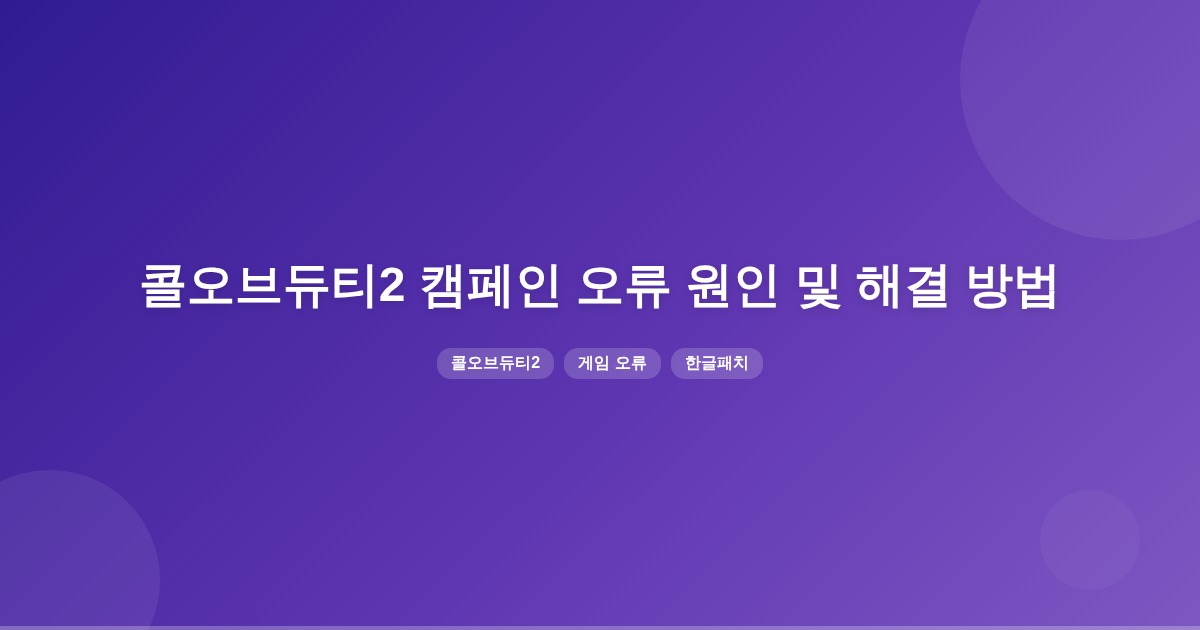 콜오브듀티2 캠페인에서 오류가 발생하는 원인은 주로 한글패치 적용 후 발생하는 문제이며, 멀티플레이어 및 좀비모드 설치가 차단 사유가 될 수 있습니다. 오류를 해결하기 위해서는 한글패치를 제거하거나 그래픽 드라이버를 업데이트하는 것이 좋습니다.