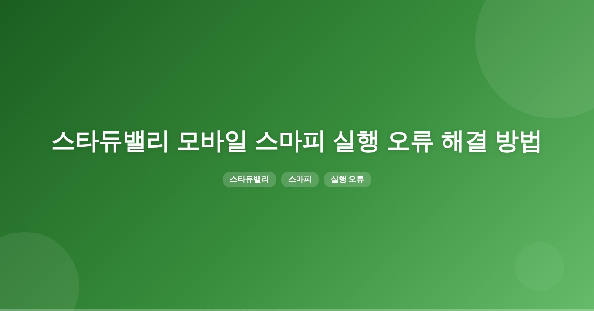 스타듀밸리 모바일에서 스마피 실행 오류가 발생하는 경우, 주로 스마피 설치가 정상적으로 이루어지지 않았거나 경로 설정이 잘못된 경우가 많습니다. 올바른 설치 방법과 경로 확인을 통해 문제를 해결할 수 있습니다.