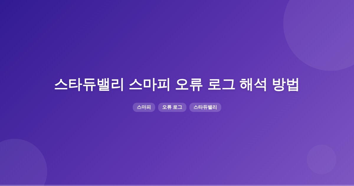 스마피 오류 로그는 SMAPI가 실행된 후 스타듀밸리가 켜질 때 콘솔에 표시됩니다. 보라색 글씨는 업데이트 필요 모드 알림, 빨간색 글씨는 오류 모드 경고를 나타냅니다.
