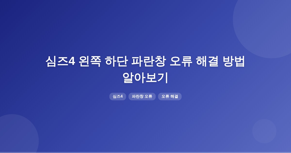 심즈4에서 왼쪽 하단 파란창 오류는 다양한 원인으로 발생할 수 있으며, 그래픽 드라이버 업데이트나 모드 비활성화로 해결할 수 있습니다. 오류 발생 시점과 메시지를 확인하는 것이 중요합니다.