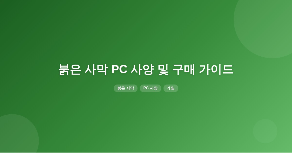 붉은 사막은 중상급 이상의 PC 사양이 필요하며, 특히 RTX 3060 이상의 GPU와 SSD 탑재가 권장됩니다. 이러한 사양을 갖추지 않을 경우 로딩 지연이나 옵션 타협이 필요할 수 있습니다.